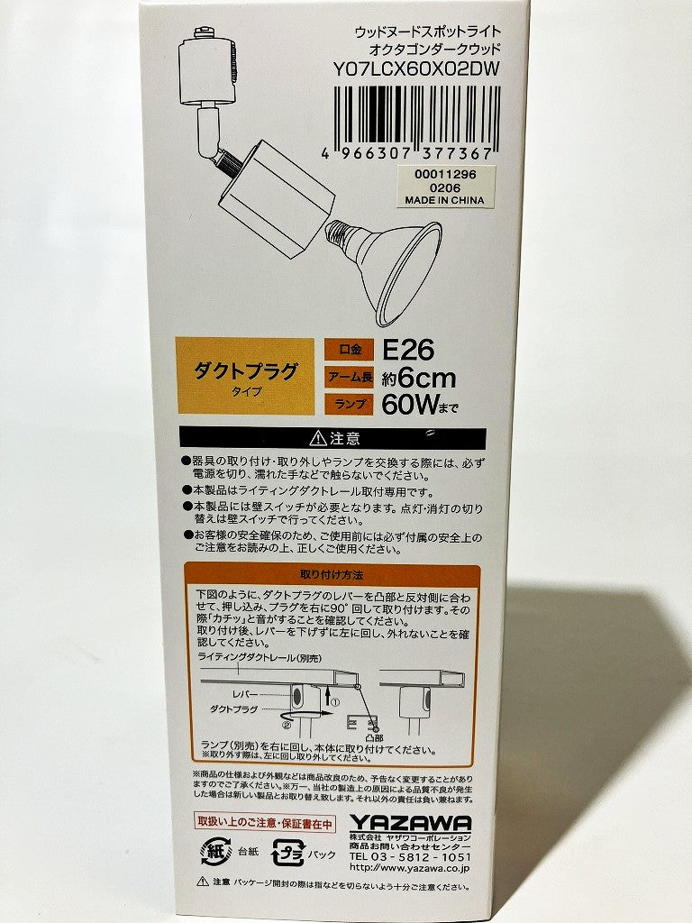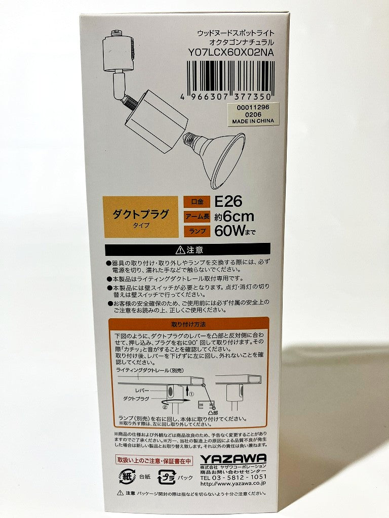 YAZAWA レール用 ウッドヌードスポットライト(八角柱タイプ)Y07LCX60X02