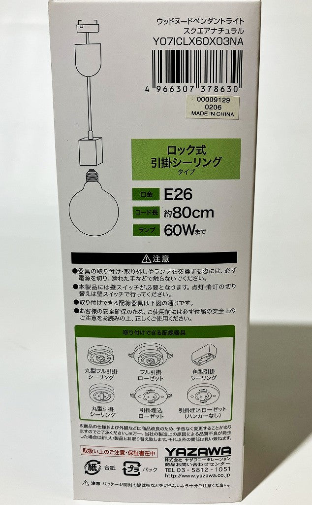 YAZAWA 引掛シーリング用 ウッドヌードペンダントライト(四角柱タイプ)Y07ICLX60X03
