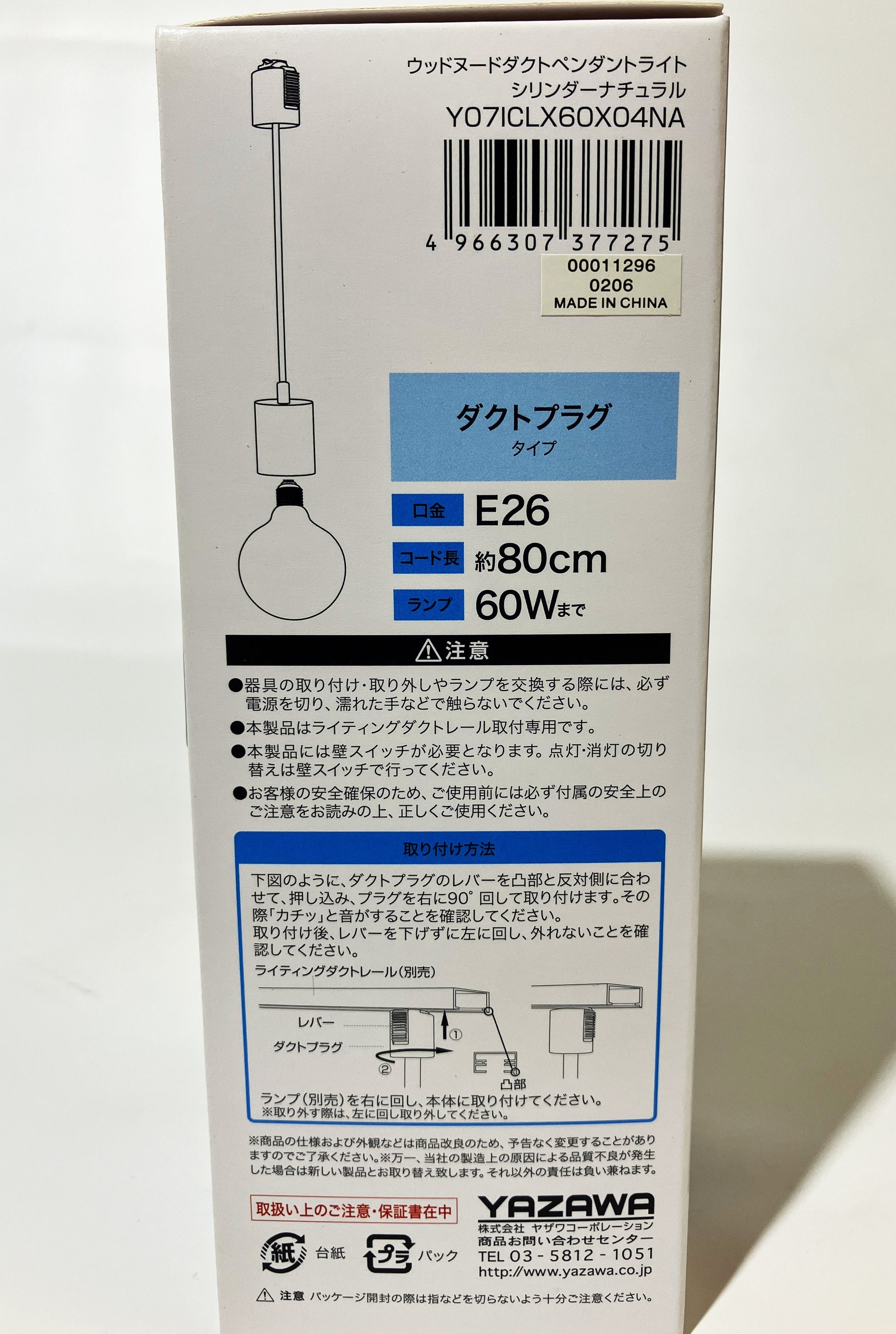 YAZAWA レール用 ウッドヌードペンダントライト(円柱タイプ)Y07ICLX60X04