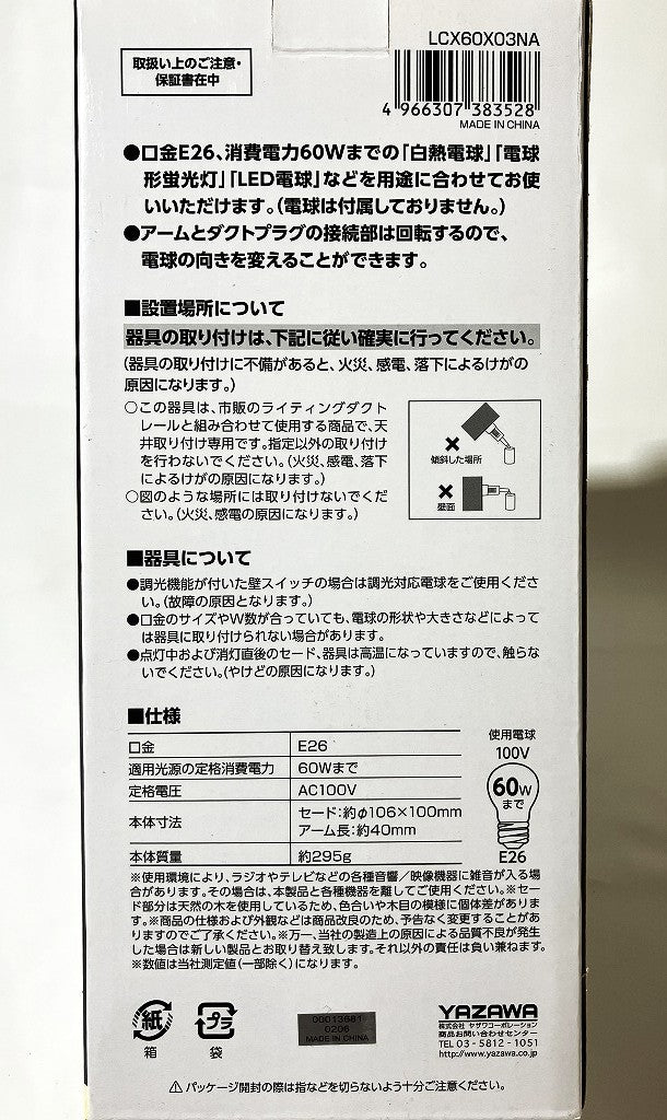 口金E26 消費電力60Wまでの(白熱電球・電球型蛍光灯・LED電球)などがお使いいただけます。